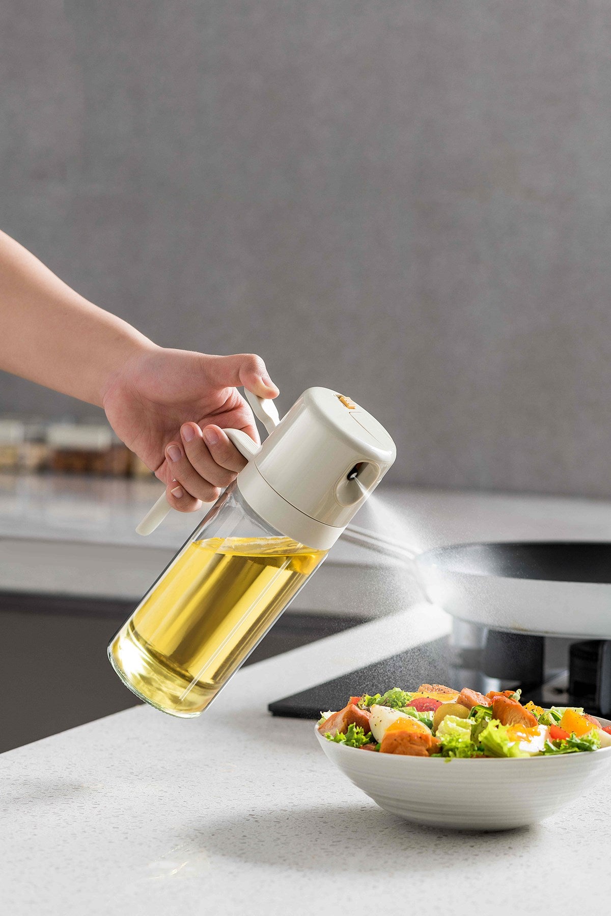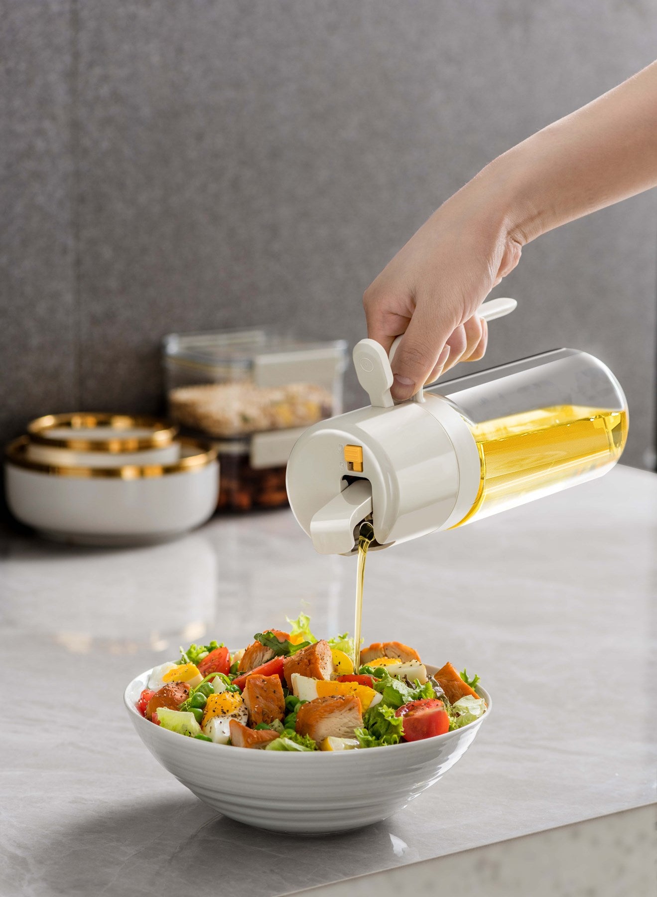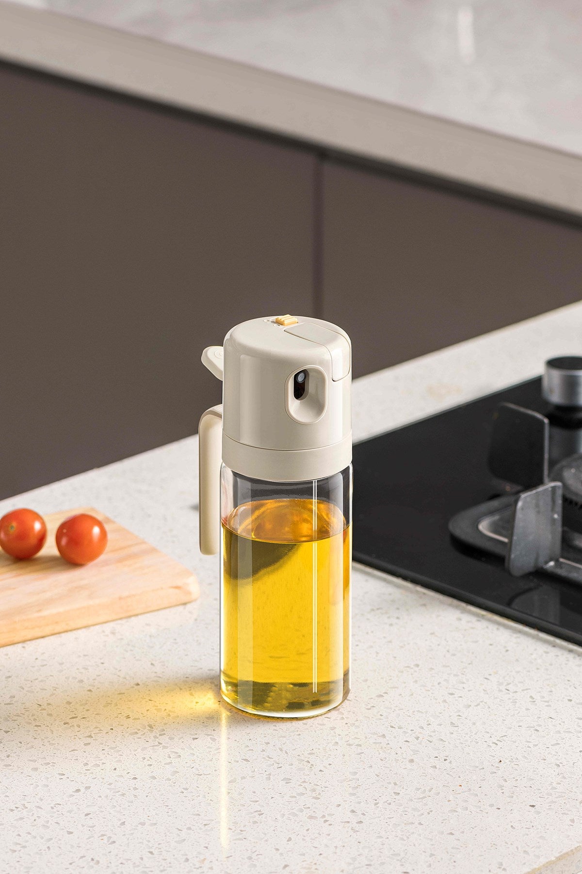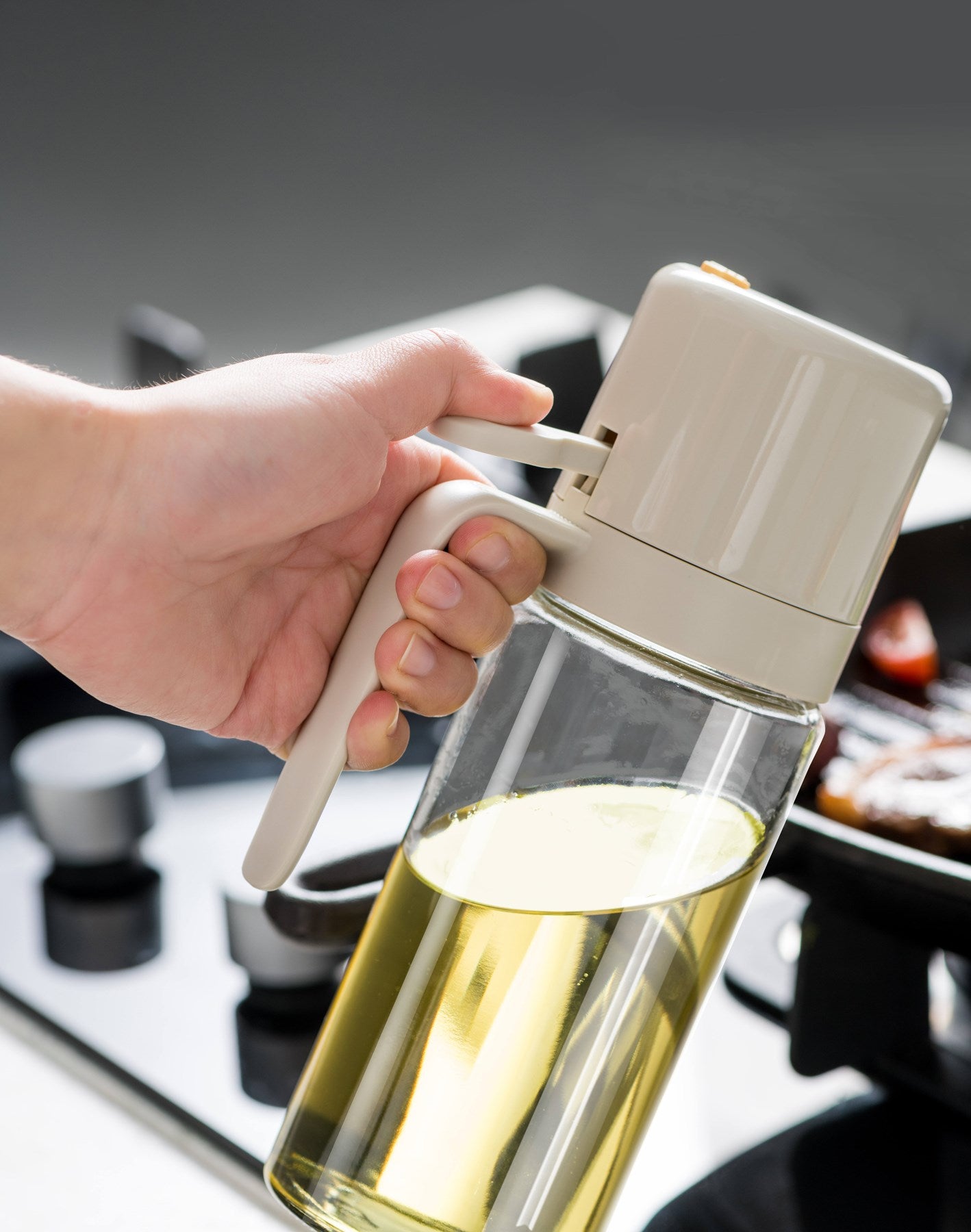 Bu çift kullanımlı cam yağdanlık; hem dökme hem püskürtme özelliğiyle mutfakta size tam kontrol sağlar. 450 ml kapasitesiyle yeterli miktarda sıvı yağ, zeytinyağı ya da sirke depolayabilirsiniz.