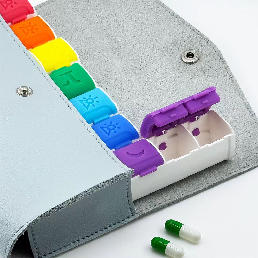 Bu özel set, her biri 4 bölmeli toplam 7 adet renkli ilaç kutusunu şık bir taşıma çantasında bir araya getiriyor. Her gün için ayrı bir kutu; sabah, öğle, akşam ve gece kullanımına uygun şekilde bölmelendirilmiştir. Renkli tasarımı sayesinde günleri karıştırmazsınız, takip etmesi son derece kolaydır.