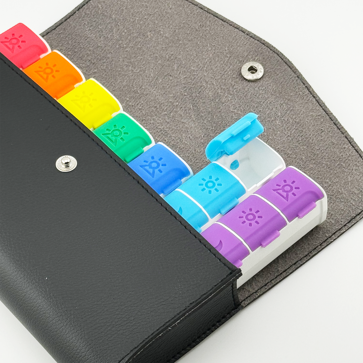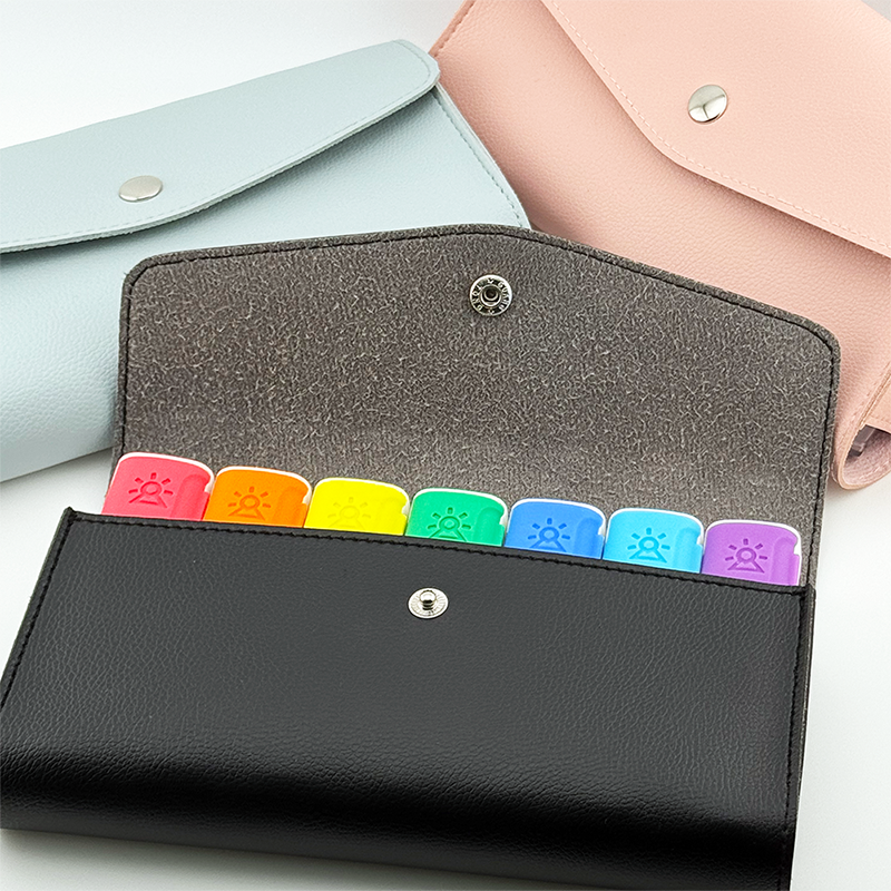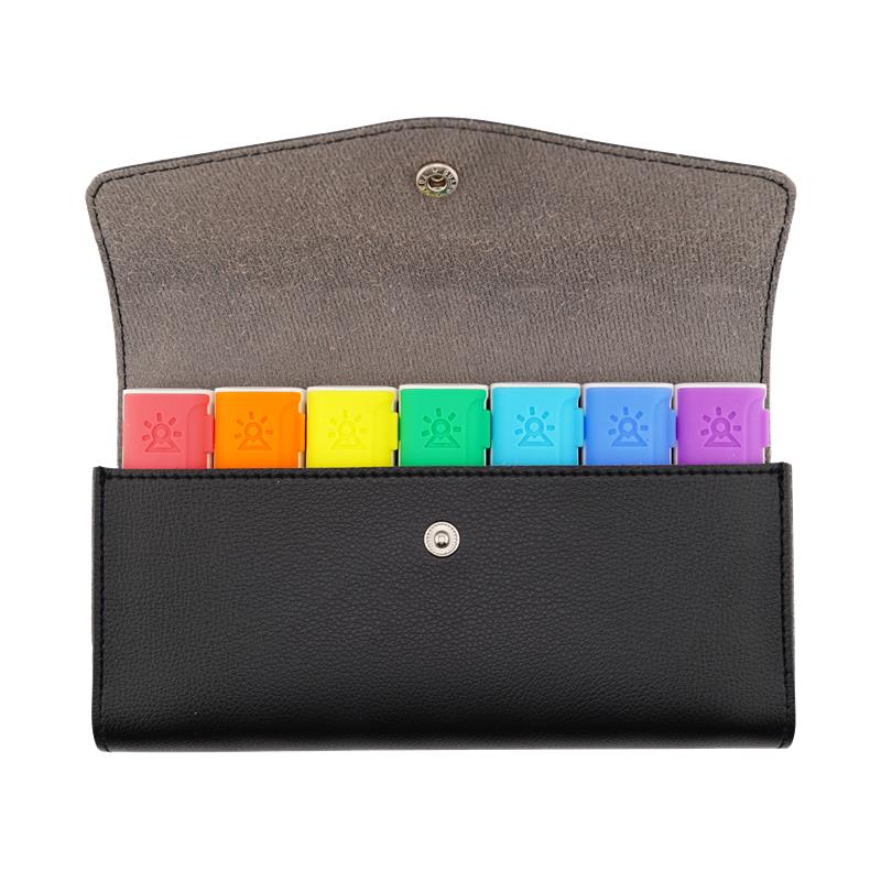 Bu özel set, her biri 4 bölmeli toplam 7 adet renkli ilaç kutusunu şık bir taşıma çantasında bir araya getiriyor. Her gün için ayrı bir kutu; sabah, öğle, akşam ve gece kullanımına uygun şekilde bölmelendirilmiştir. Renkli tasarımı sayesinde günleri karıştırmazsınız, takip etmesi son derece kolaydır.